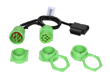 Universal Heavy-Duty T-Harness Kit for the GO device. Multi-adapter kit consisting of a 9-pin T-harness (HRN-DM09T2) and 4 different mounting adapters (adapter 1 pre-installed) for use in most medium and heavy-duty international vehicles. Eliminates the need to know vehicle information in advance.
