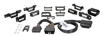 Universal OBDII T-Harness Kit for the GO device. Multi-adapter kit consisting of a T-harness (HRN-BM16T2) and 12 different mounting adapters for use in most light-duty, medium-duty, and heavy-duty vehicles, and is compatible with most models globally.